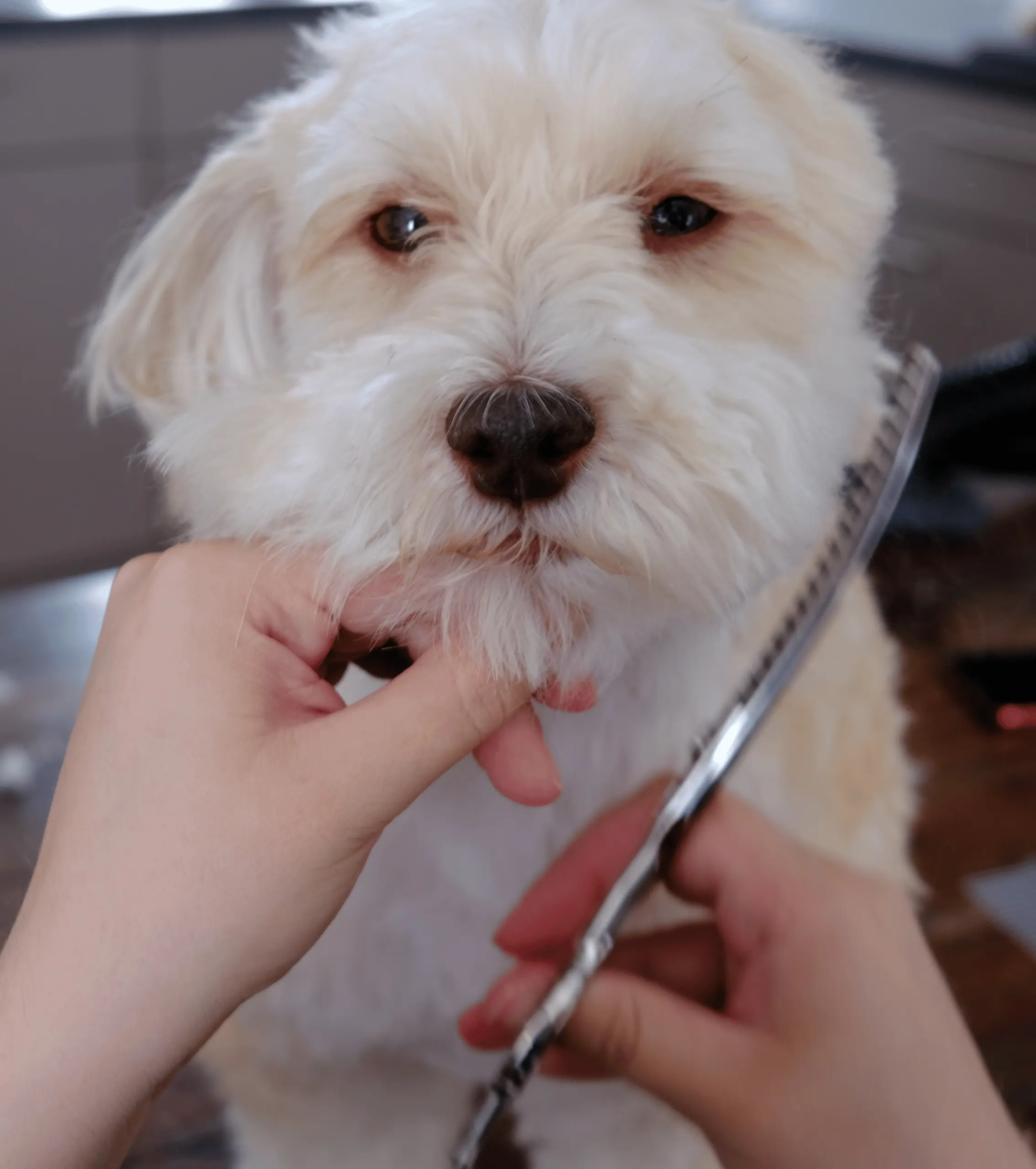 Ten eerste neem ik natuurlijk alles mee om uw hondje te kunnen knippen of scheren. Ik neem de hondenshampoo mee en de conditioner!